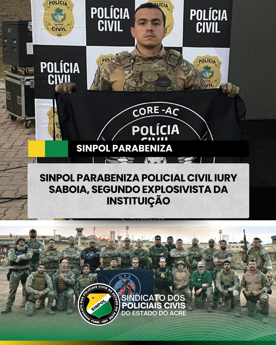 O SINPOL-AC parabeniza o policial civil lury Saboia, integrante da CORE/AC, pela conclusão do II Breacher Blaster, curso técnico de alto nível realizado em Goiás.